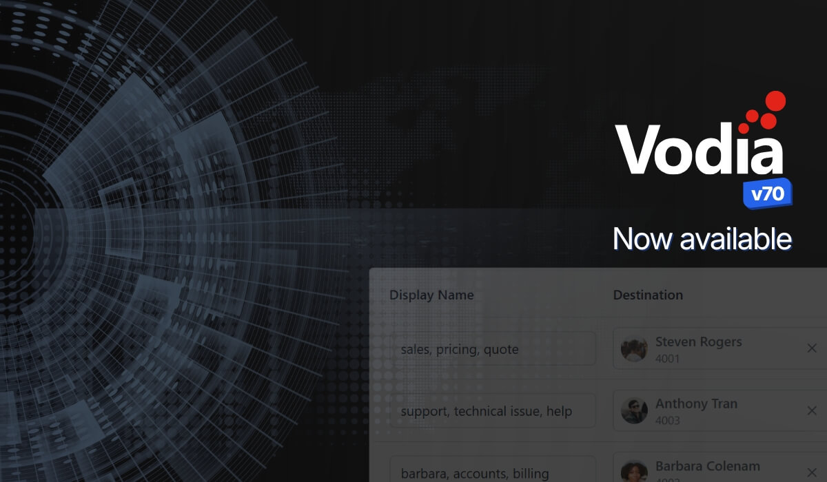 Vodia PBX V70 introduces a redesigned admin interface, multi-core scalability supporting more than a thousand concurrent calls per server, and integrated AI voice agents for both inbound and outbound communication. Reusable AI templates make automation easier to deploy, while snapshots and centralized provisioning reduce operational risk. With custom dashboards, emergency alerts, and WhatsApp Business integration, V70 provides greater control and flexibility for real-world deployments.