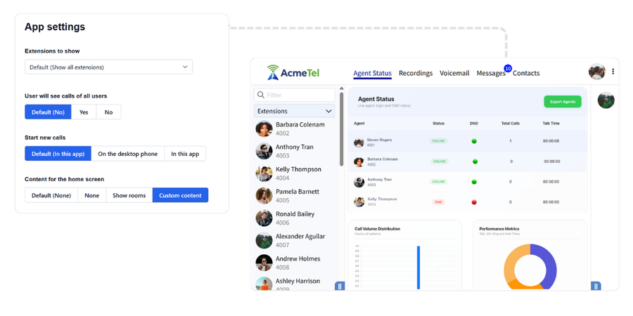 Explore branding and customizationApply your identity across the service, so customers see your brand, not a generic PBX.